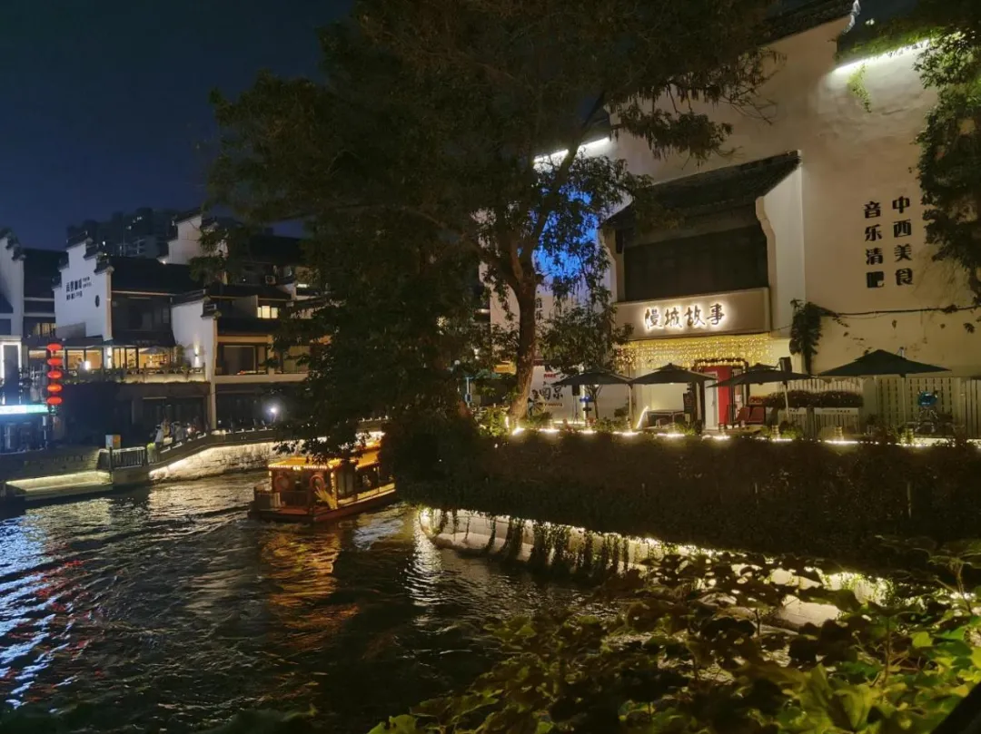 谈及当年初到南京,我们相视一笑,忆起为了省钱,两人分食一碗鸭血粉丝汤的窘迫,如今握着温热的桂花酒,望着湖中摇曳的灯火与两岸古建筑的剪影,才懂岁月沉淀下的情谊,早已无关朝夕,心有灵犀,无需多言。那些藏在时光里的牵挂与惦念,都在这温柔晚风与闲话家常中,化作了重逢最珍贵的注脚,温暖了整个夜色。