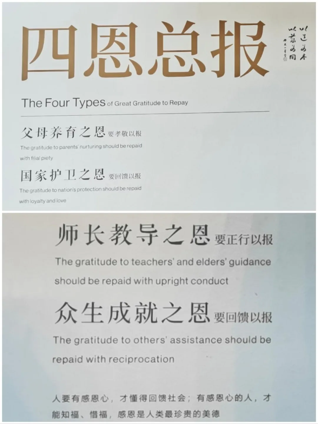 上图:报恩寺里文化墙关于四恩的精彩阐述