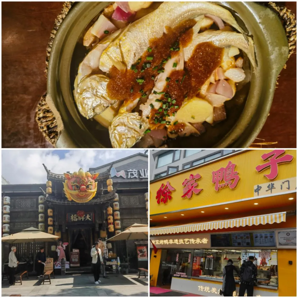 夫子庙内,已是人潮鼎沸,尽显市井繁华与文化底蕴。沿街的小吃店飘来阵阵香气,文创店的摆件精致别致,网红打卡点前游人络绎不绝,每一处都透着鲜活的生命力。南京大牌档与成都大排档的“接地气”风格迥异:在烟火气中浸着雅致,一菜一碟都透着文化韵味与仪式感。鸭血粉丝汤鲜醇入味,盐水鸭皮薄肉嫩,金陵汤包汁满鲜香,糖芋苗甜润绵长……每一道美食,都藏着南京的味觉记忆,让人回味无穷。