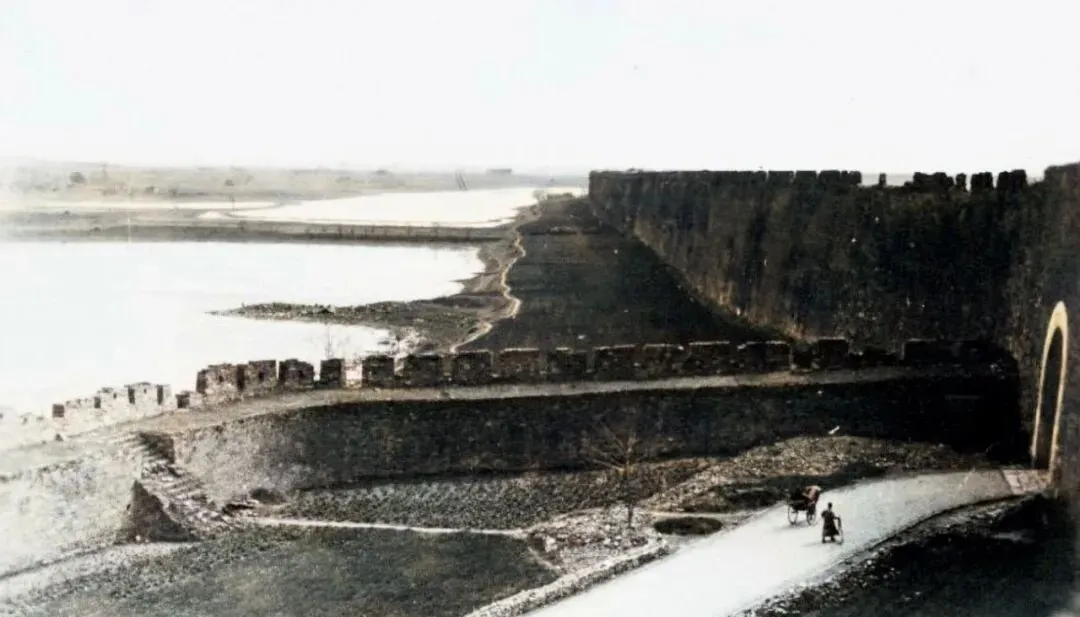 这条依水伸展的城垣,厚得像一条黑背的鱼,女墙一齿一齿咬过去,内外两重道折成弯,推车的人从脚下晃过去,影子斜斜地跟着跑,那时候城墙就是骨头,撑着一整座城。