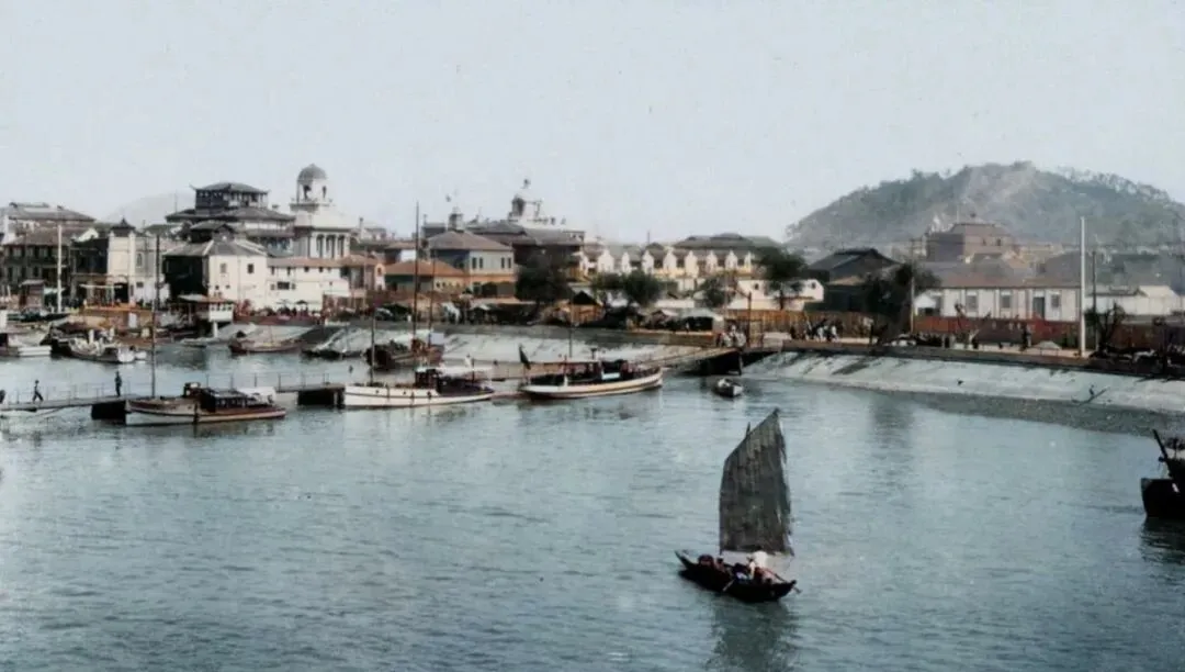 这个水湾叫中山码头,远处穹顶的建筑露了半边,码头上小烟囱一根根,机帆船和乌篷挤在一道儿,潮水把船身拎得轻轻发响,城的生计,大半从水里来。
