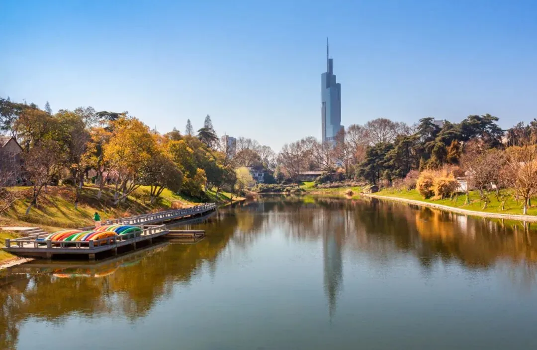 游览【玄武湖】:古名桑泊、后湖,位于钟山脚下,是中国规模较大的皇家园林湖泊,与嘉兴南湖、杭州西湖并称“江南三大名湖”。玄武湖分为五块绿洲,荟萃了许多的名胜古迹,现在是南京有名的文化休闲公园。你可以环湖漫步,欣赏玄武湖的景色。若是夏天来到这里,可以看到大片荷花盛开,水面一片碧绿,尤为迷人。湖的南岸有一段明城墙(即明城垣史博物馆所在的城墙),在此观湖也别有一番风味。