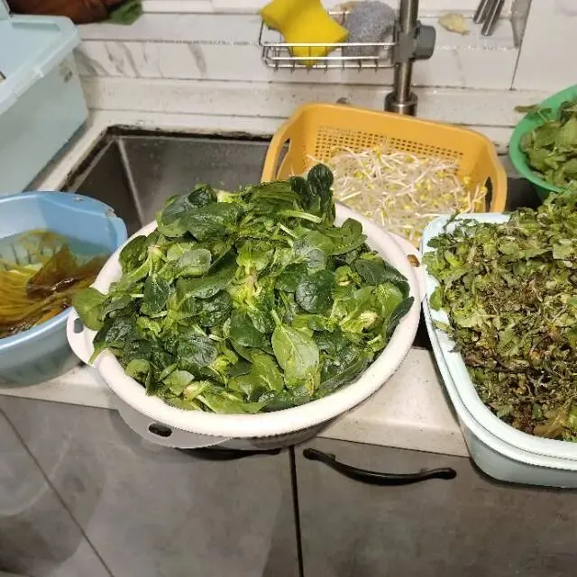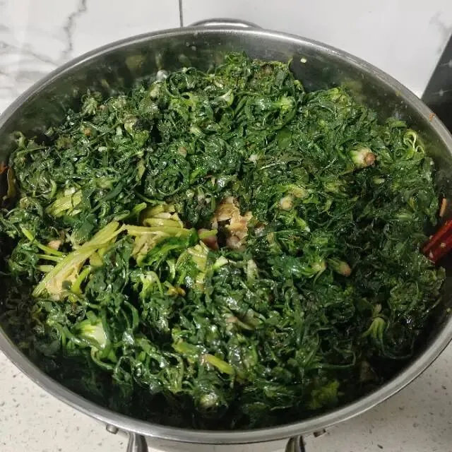最后,被荠菜炒好,期待来年财聚我家,摊凉后,就可以进行最后的翻拌了。