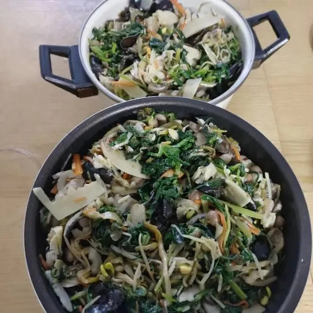 炒了一大锅,分成两份。