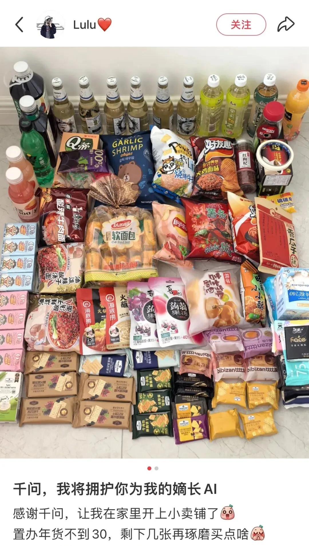 第⼀批南京千问⼈已经胖了好几斤。从年轻⼈的⼀杯奶茶,到实用派的米面粮油,还有过年不可或缺的砂糖橘、瓜子坚果、苦荞片,也纷纷在“25元免单卡”的加持下,都到了千问人的肚里。