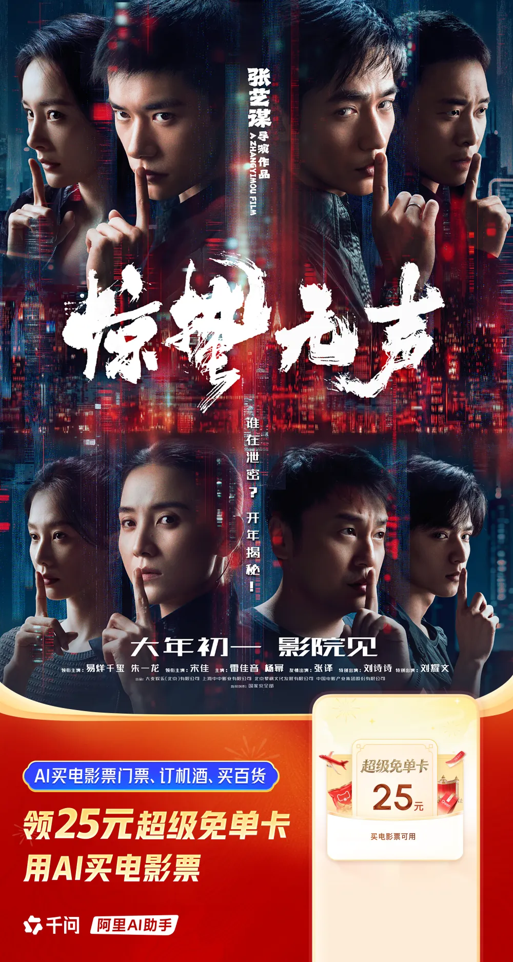 比如由易烊千玺主演的《惊蛰⽆声》,就是一部由张艺谋导演的讲述当代国安反谍的电影,全片暗流涌动、悬念迭起,加上有朱一龙、宋佳、雷佳音等超强阵容助阵,不管是从题材还是阵容来看都相当吸引人!