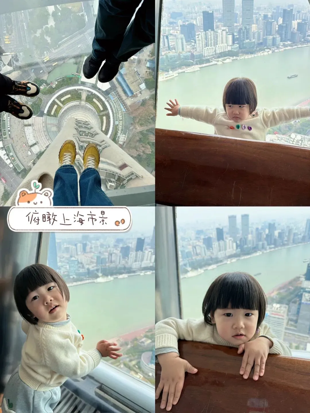 吃完午餐,直接下楼游览东方明珠。站在259米的透明悬空廊上,我家娃一开始有点怕,后来兴奋地在上面的走来走去。结束后打车回我们预定的外滩附近的酒店办理入住。在酒店休息片刻,给娃和自己充充电,这点对保证后续体力非常重要!