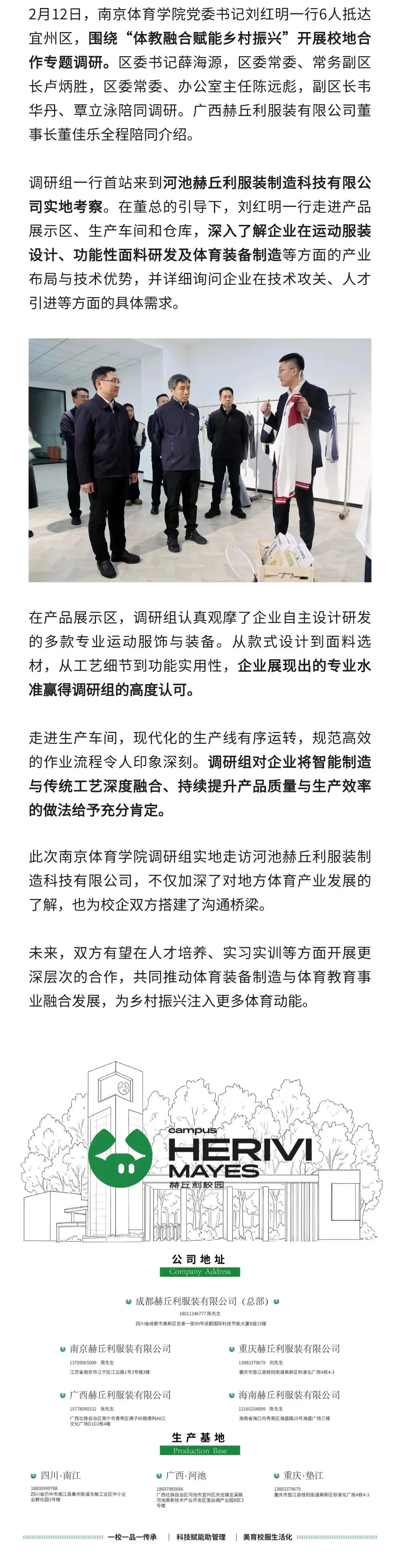 >深化校企对接 | 南京体育学院调研组走进河池赫丘利服装制造科技有限公司