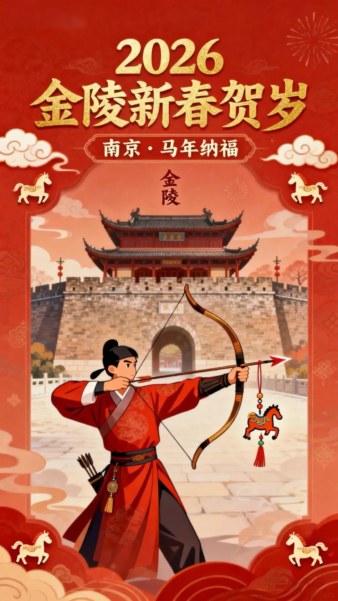 值此丙午新春佳节来临之际,南京市射箭运动协会谨向全市射箭工作者、运动员、教练员、裁判员,向长期以来关心支持南京射箭事业发展的各级领导、各界朋友,向广大会员和射箭爱好者,致以最诚挚的节日问候!