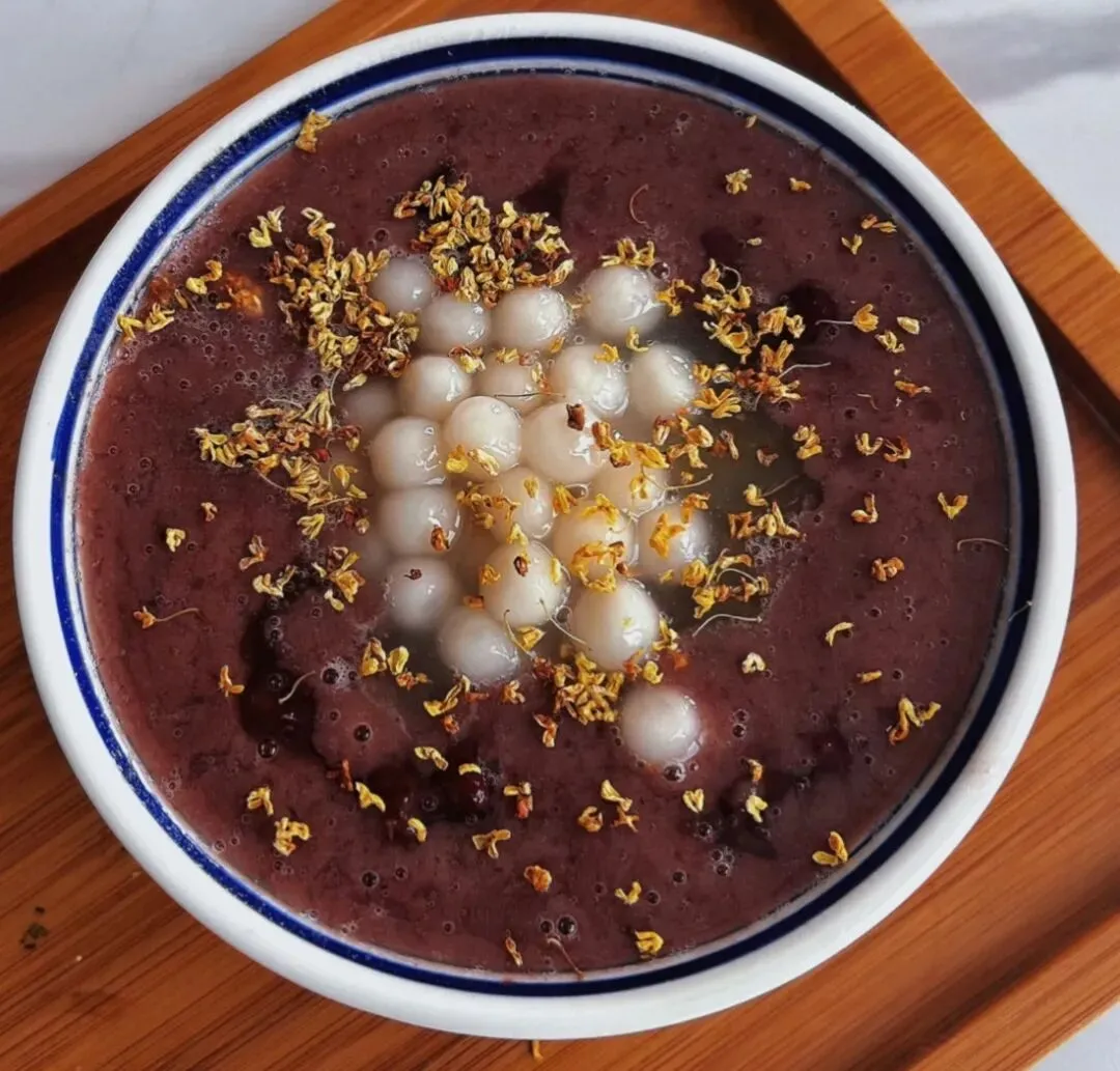 芋头是选的本地的小芋头,熬得软糯绵密,一抿就化,完全没有硬心,汤底是用红糖和藕粉熬的,稠稠的,滑滑的,再撒上一把干桂花,香得不行。甜丝丝的,不齁不腻,每一口都是芋头的绵密和桂花的清香,暖乎乎的,整个人都放松下来了。