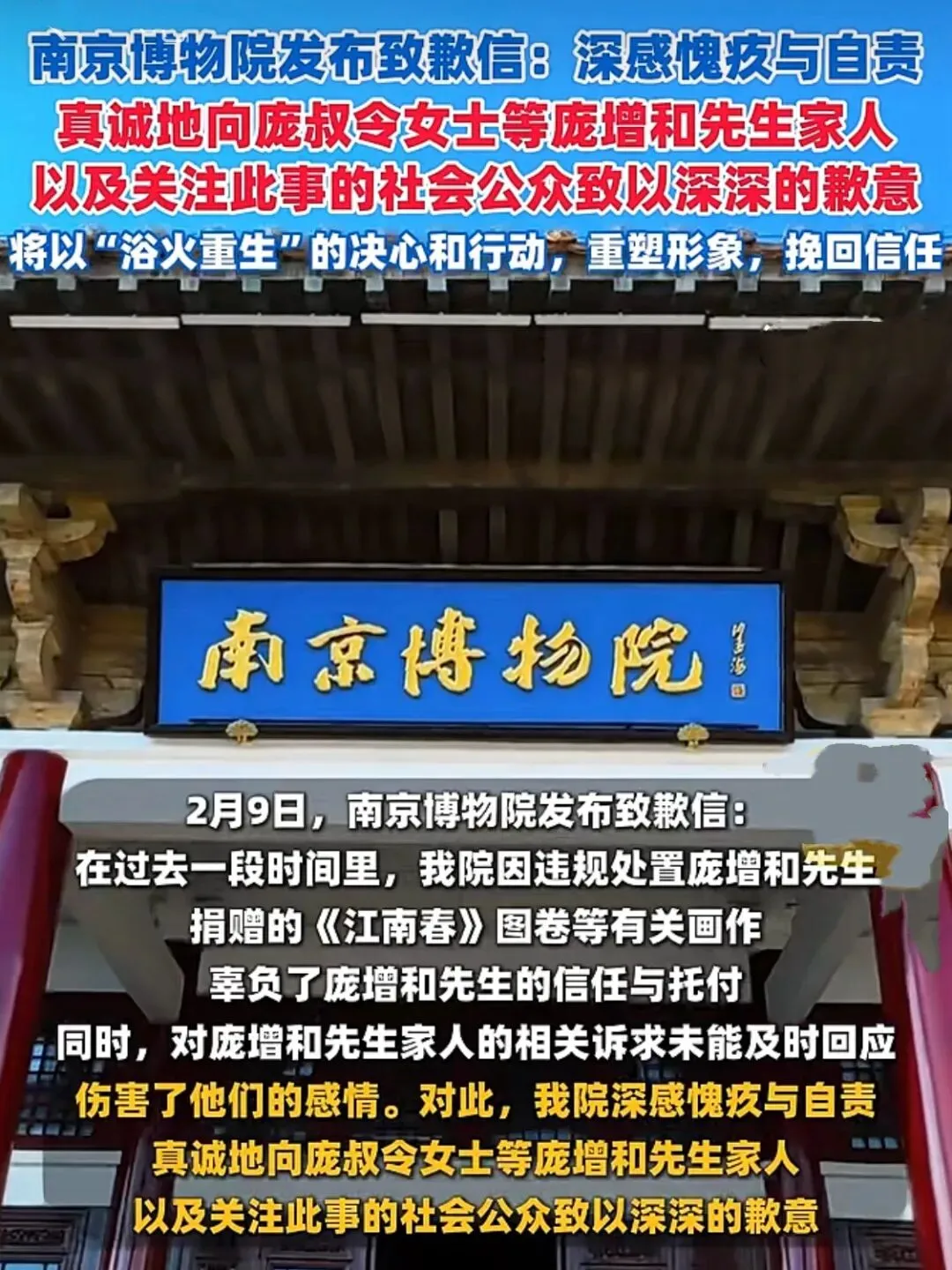 江苏省委省政府调查组《关于南京博物院〈江南春〉图卷等相关受赠文物管理问题调查处理情况通报》和南京博物院致歉信,为沸沸扬扬的“江南春事件”正式定调。