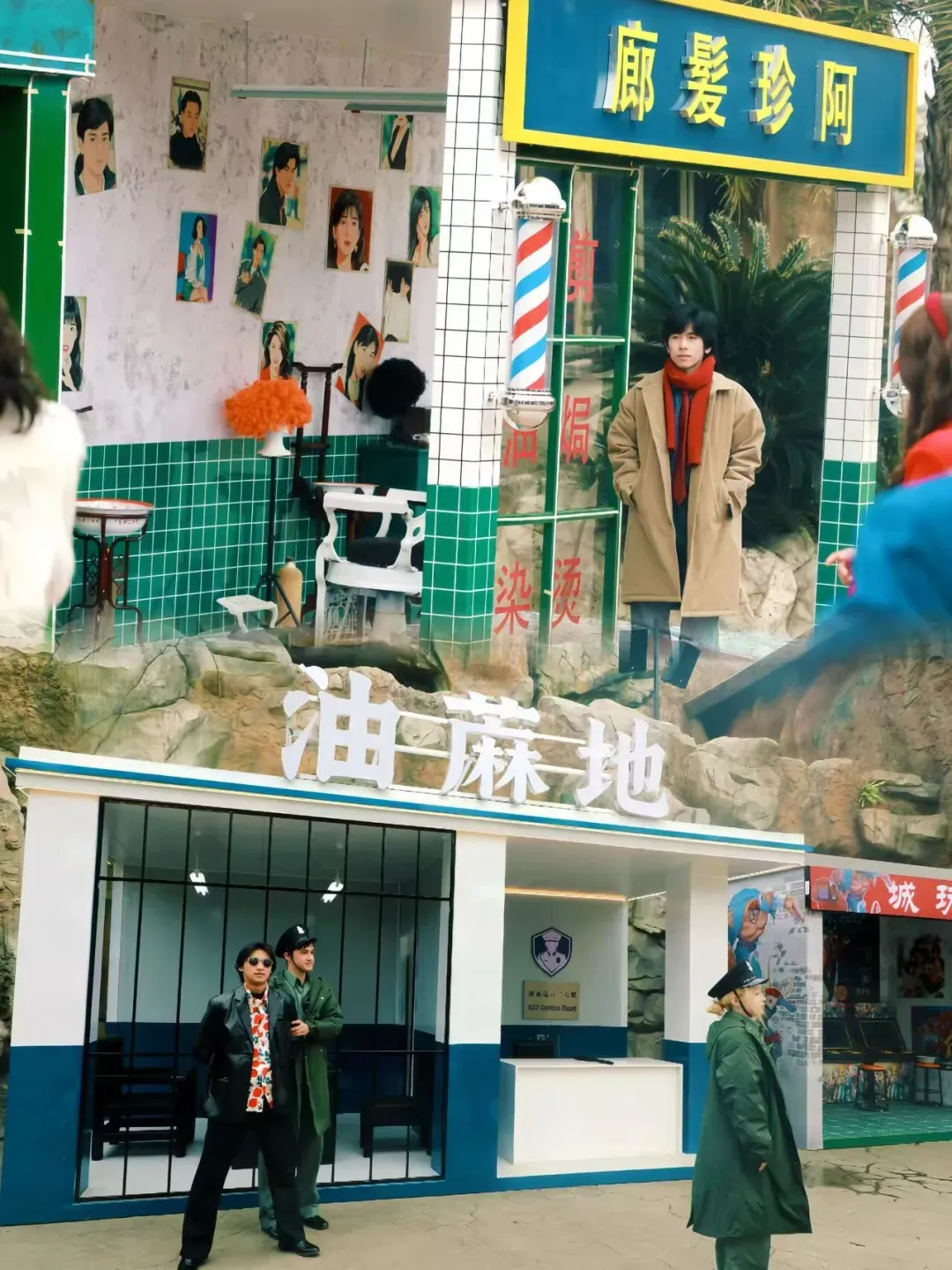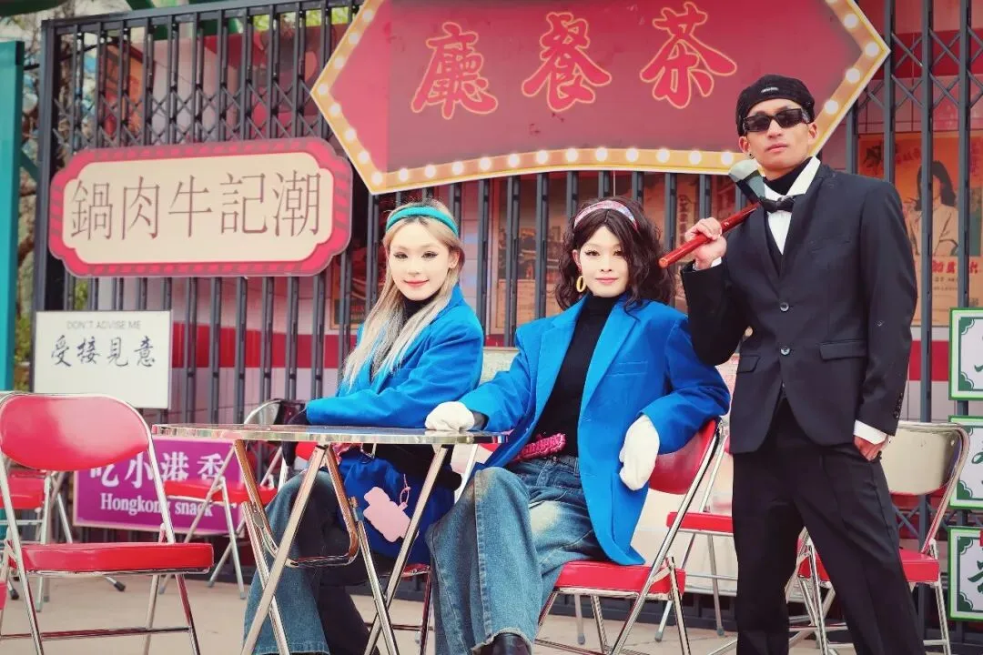 极具年代感的复古铺头鳞次栉比,港式茶餐厅、复古杂货铺、老式发廊错落排布,细节里尽显地道港风韵味;耳畔循环播放的经典粤语金曲,旋律悠扬婉转,将怀旧氛围感拉满,每一步都踏在时光的节拍上。