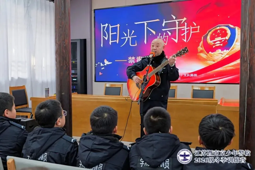 参观结束后,南京市公安局刑侦(禁毒)支队四级高级警长陈林以深入浅出、分门别类、弹唱集合的形式,向学警们讲述了禁毒法规、毒品类别、毒品危害、毒品预防等安全知识,并向孩子们介绍了缉毒警察所面对的危险以及所作出的卓越贡献。这些“行走在刀尖上的人”树立起禁毒防毒的铜墙铁壁,激励我们要全力以赴禁绝毒品,守护国家安全。学警们纷纷表示,“致敬缉毒警察,希望他们每次出征都能平安归来!”