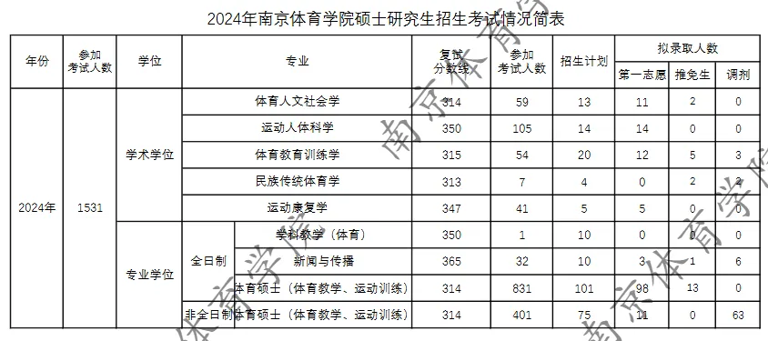 今天学姐给大家整理了南京体育学院2025年研究生复试分数线,一起来看看吧~(后附2024年硕士研究生招生录取统计)