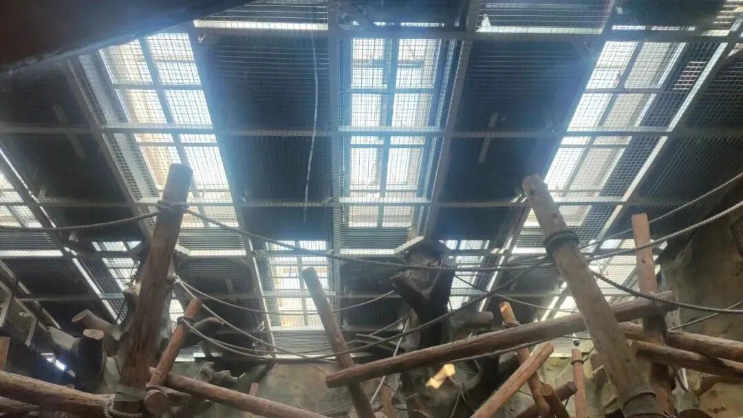 顶部还有数座巨大的天窗,保证室内区域充足的日常自然光照,并且栖架大量的顶部位置也接近天窗,大猩猩们攀爬至这些栖架顶部位置时可以非常惬意的享受自然光照。