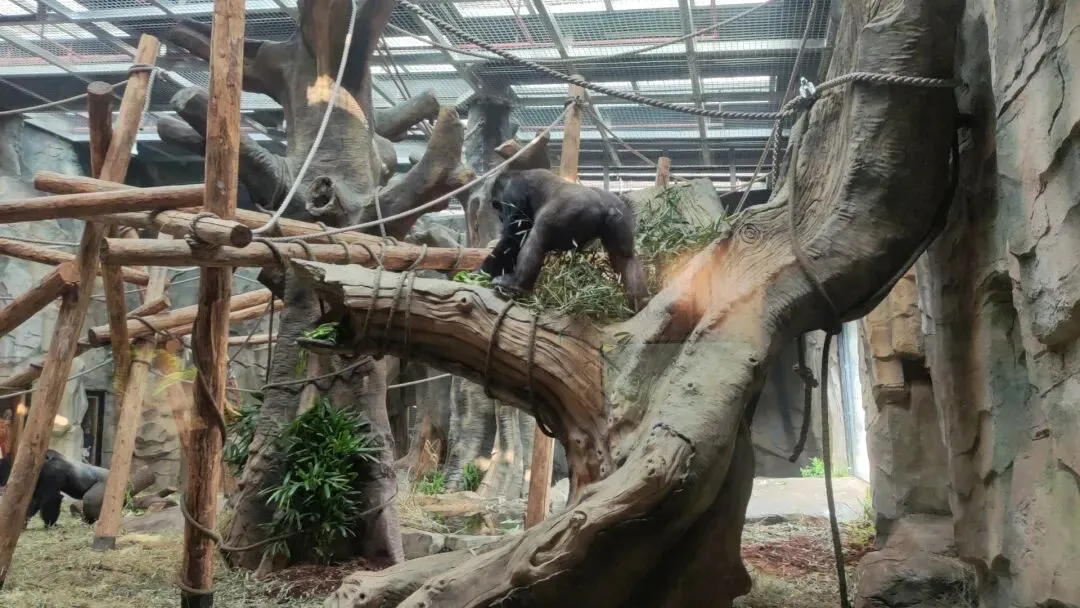 室内展区中有数座栖架都复刻了野外的树木形态,表面粗糙且跌宕起伏,便于大猩猩们日常攀爬的同时还能让它们获取不同的体表触感,丰富其日常环境感知。