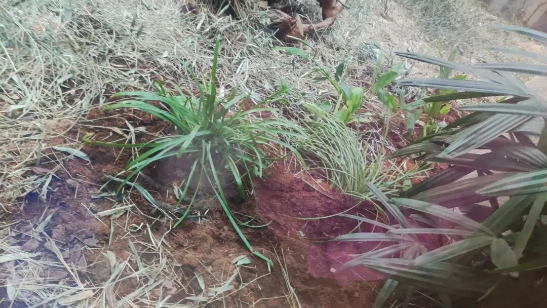 地面的环境丰富度还不止于此,还有着厚实的椰土垫层,还种植了一些植物。形成了非常多样化的地表环境,不同材质的垫料再一次提升了大猩猩们在展区地面活动栖息时的体表触感,而植物能够丰富大猩猩们的日常视觉,嗅觉,触觉等多方面感知。如此多元化的展区地面模拟了各类元素极为丰富的野外地表环境,让整体空间质量进一步“活起来”。让动物日常生活的每一步都能够充满新的体验。