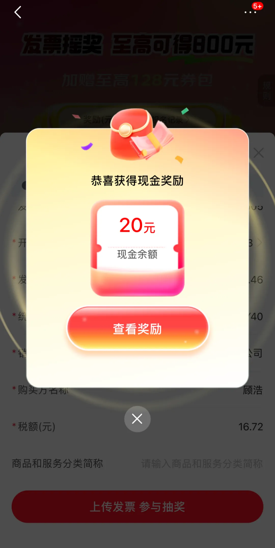 进入“有奖发票”活动专区,上传电子发票,即可抽奖。