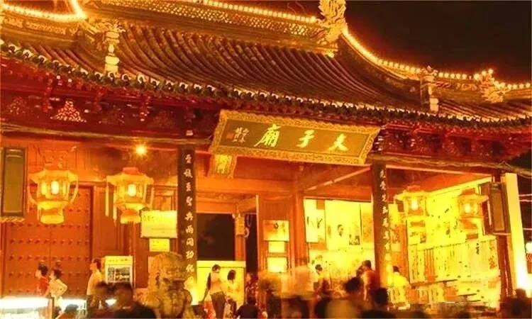 南京夫子庙是一组规模宏大的古建筑群,主要由孔庙、学宫、贡院三大建筑群组成,占地极大。有照壁、泮池、牌坊、聚星亭、魁星阁、棂星门、大成殿、明德堂、尊经阁等建筑。夫子庙被誉为秦淮名胜而成为古都南京的特色景观区,是中国最大的传统四大闹市古街市,与上海城隍庙、苏州玄妙观和北京天桥为中国四大闹市。