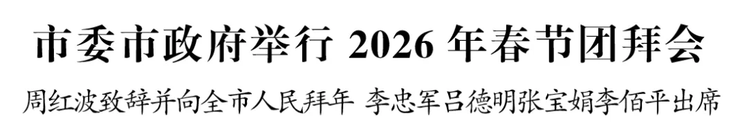 金蛇辞旧岁,骏马迎新春。2月14日,市委市政府举行2026年春节团拜会。市四套班子领导与各界代表欢聚一堂、共迎新春,畅叙深厚情谊,共话发展蓝图。市委书记周红波致辞,市长李忠军主持,市人大常委会主任吕德明、市政协主席张宝娟、市委副书记李佰平出席。