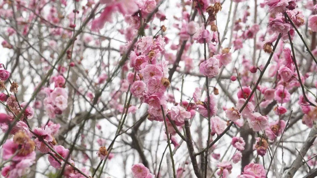 虽然才二月,但梅花已经开了很多,黄的素雅,粉的明媚,团团簇簇,很是漂亮。