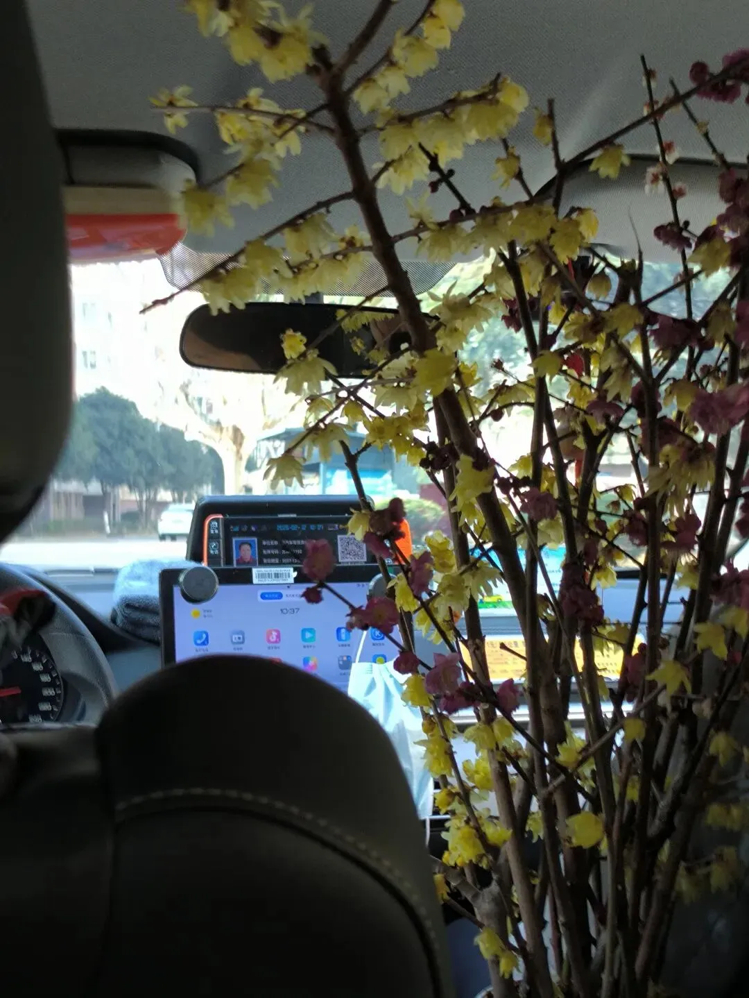 一位司机颇有情志,在车中放了盆梅花,不算浓烈的香味萦绕在鼻尖,“人家第二次坐我的车时,一下就能认出我”,冬天是腊梅,夏天是荷花。