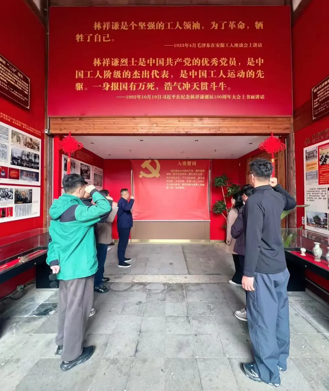 作为中国共产党早期杰出工人运动领袖,林祥谦用生命践行了共产党人的初心使命。党员们在铜像前重温入党誓词、合影留念,接受深刻的红色洗礼,进一步筑牢“为党育人、为国育才”的教育初心,砥砺忠诚干净担当的政治品格。