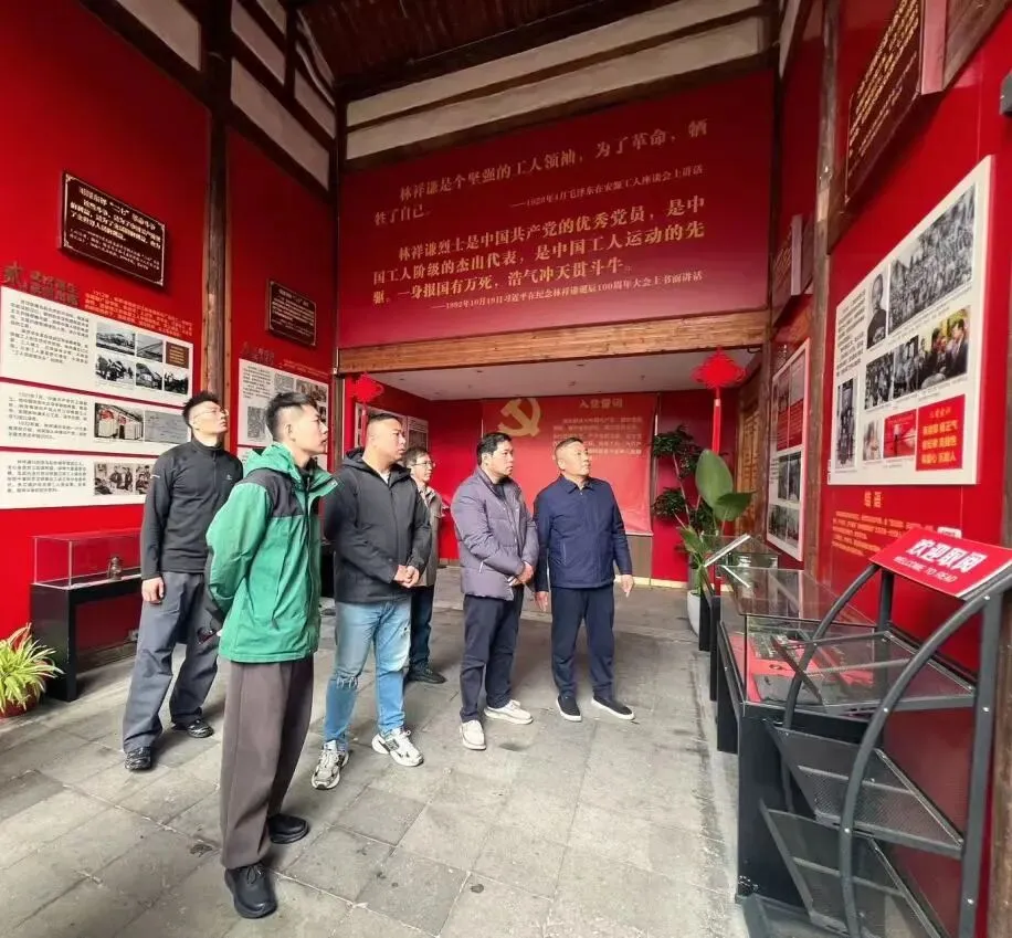 在三坊七巷林祥谦文化站,全体党员怀着崇敬之心,瞻仰工人运动先驱林祥谦烈士铜像,认真聆听革命事迹,深刻感悟烈士“身报国有万死,浩气冲天贯斗牛”的家国情怀与革命气节。