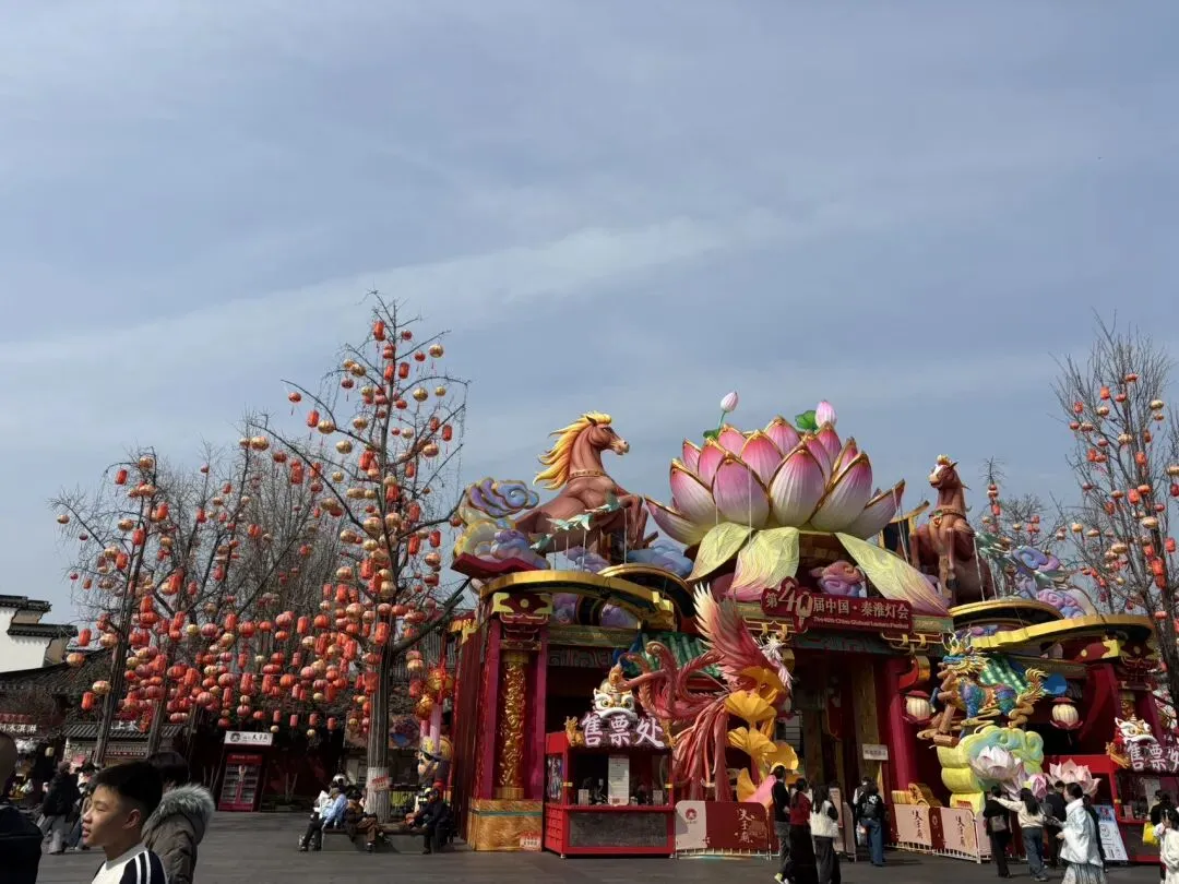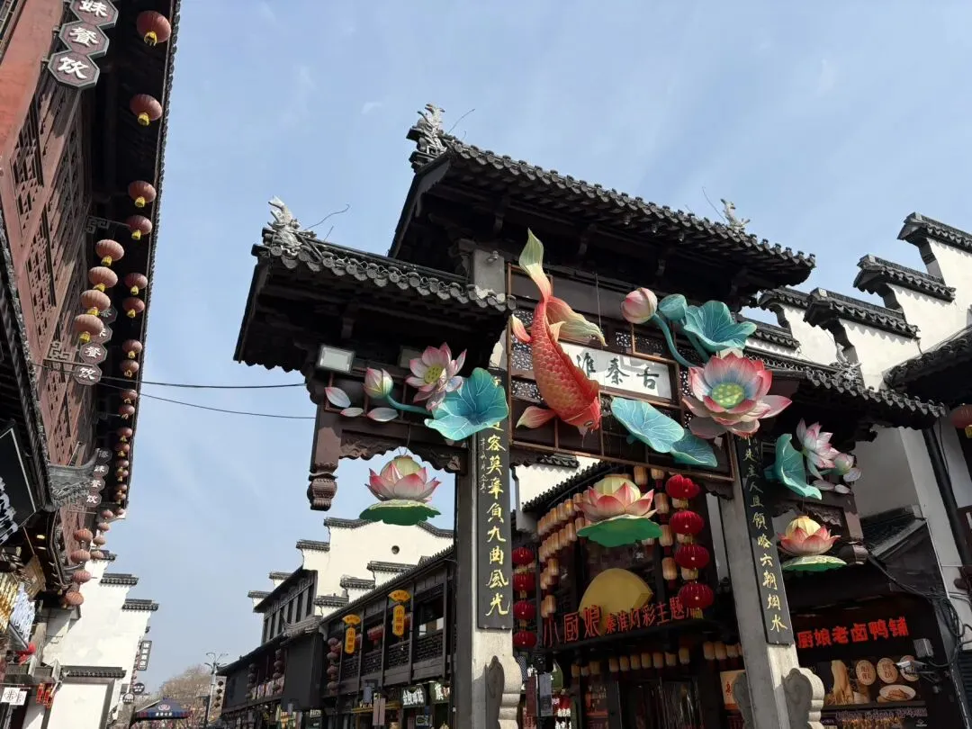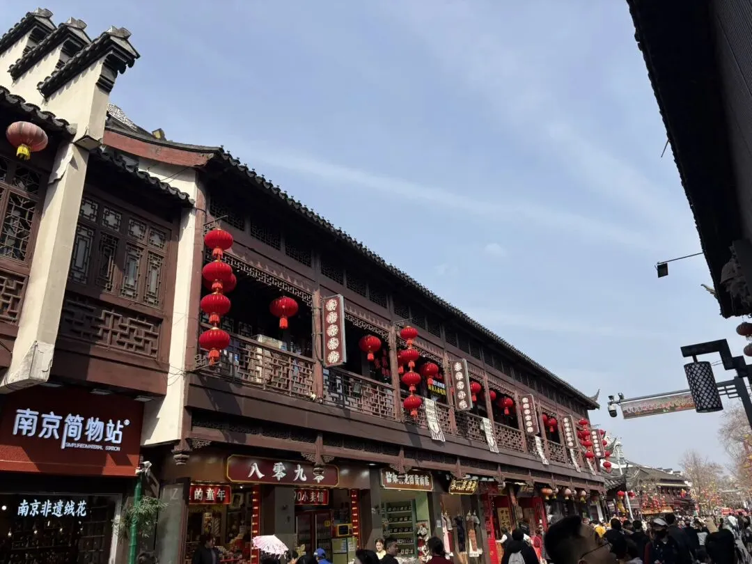 随后走到夫子庙步行街,节假日第一天人声鼎沸,热闹非凡,一派节日的气氛。