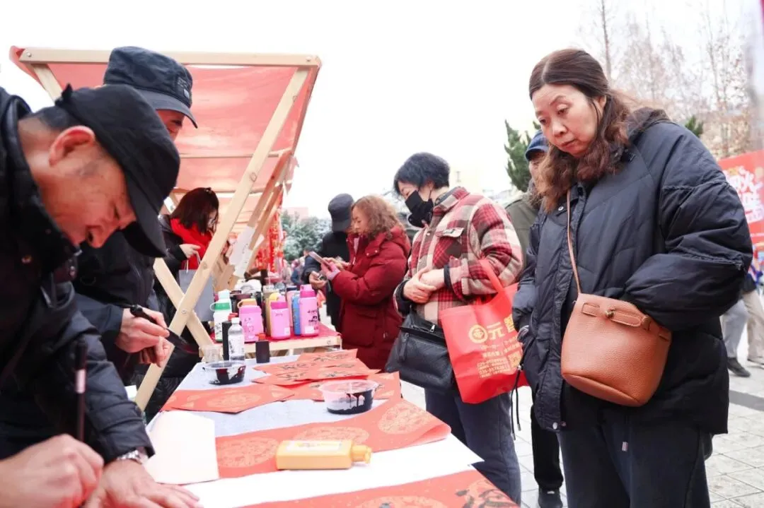 为期两天的市集划分为“寻味长廊”美食区、“宁聚好物”年货区及“联盟优享”体验区,汇聚了马老汉烧鸡公、建新饭店等本地口碑商户,以及写福字、吹糖人、糖画制作等传统民俗互动项目。市民手持“美食地图”与“打卡集章册”,穿梭于各摊位之间,品尝美食、选购年货、体验手作,现场气氛热烈、人流如织。
