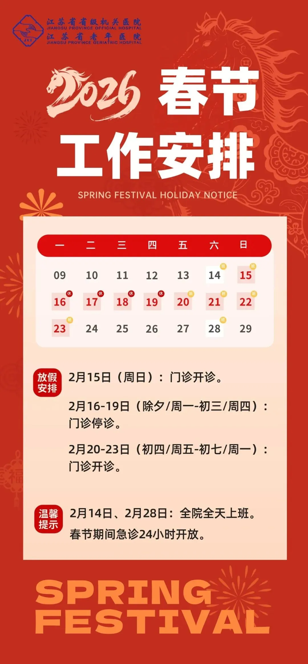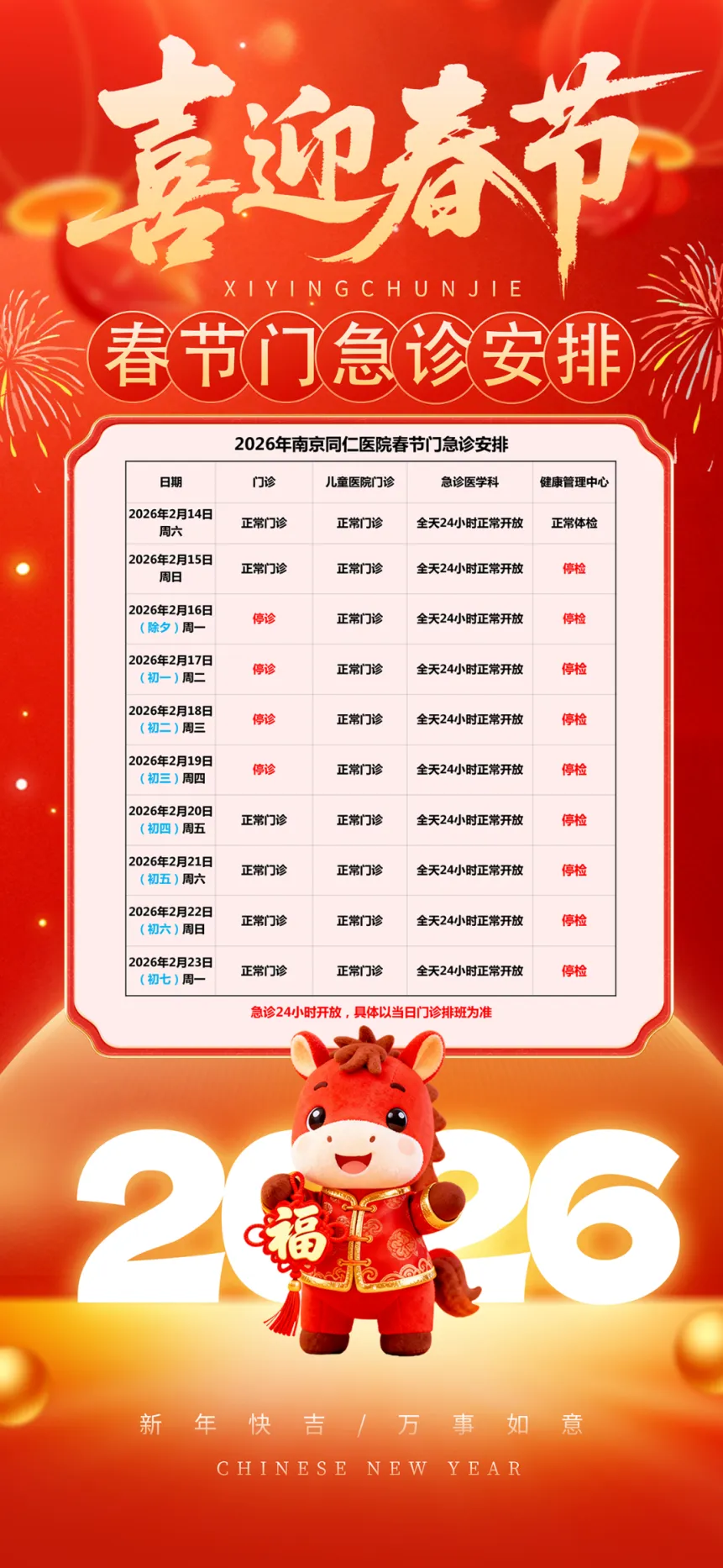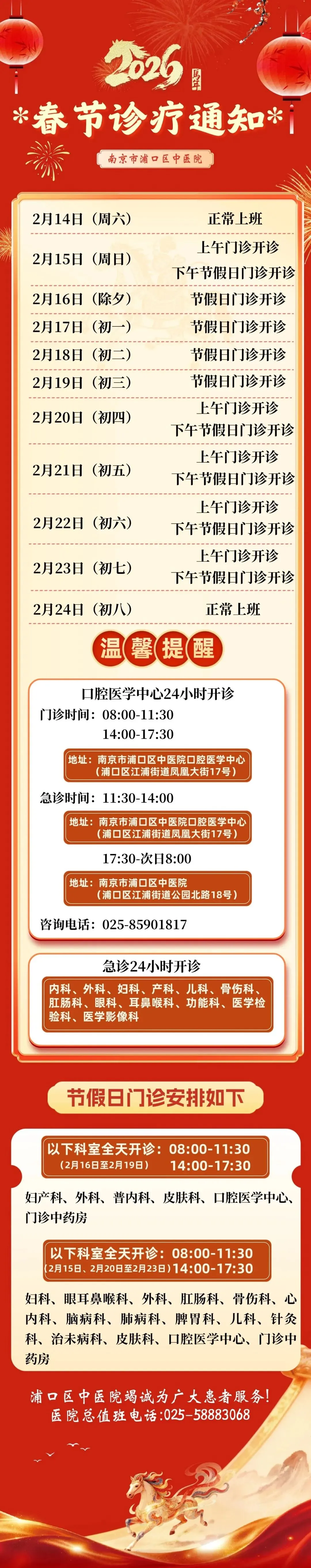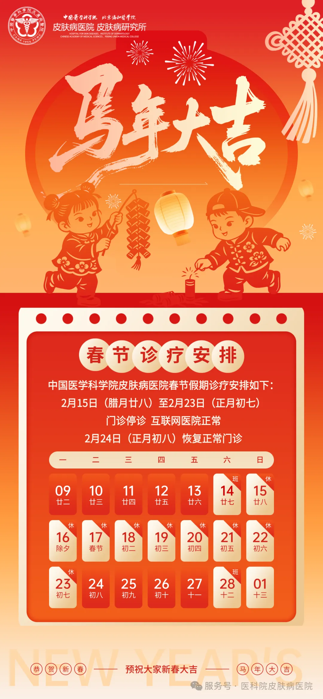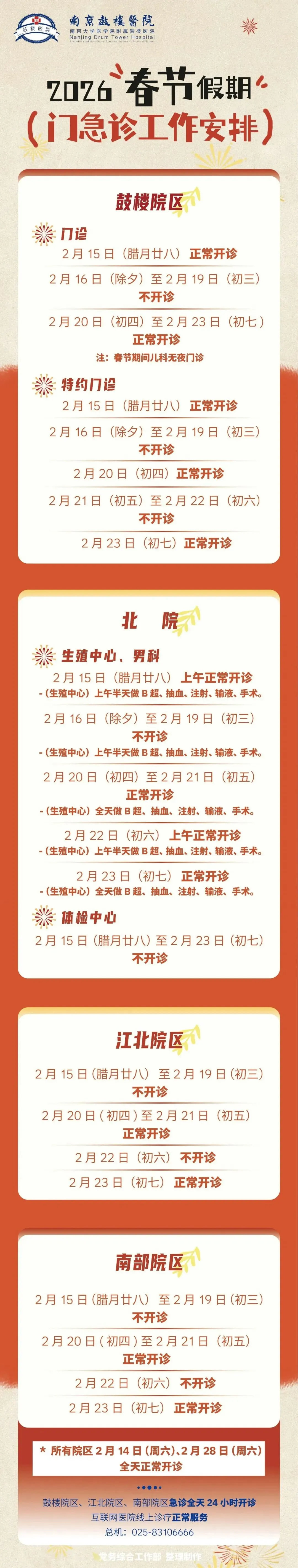 医学检验科:急诊项目24小时开展,儿保2月20日、22日开诊;生殖2月15日、18日、20日、22日、23日开诊。