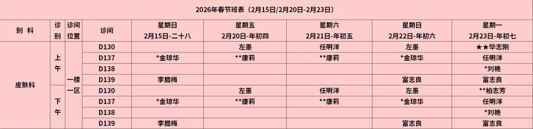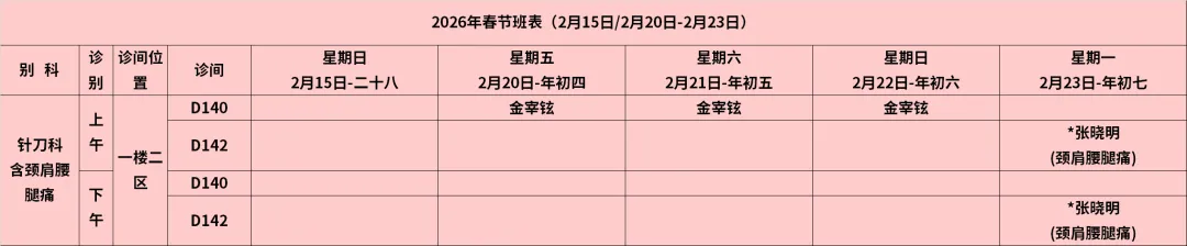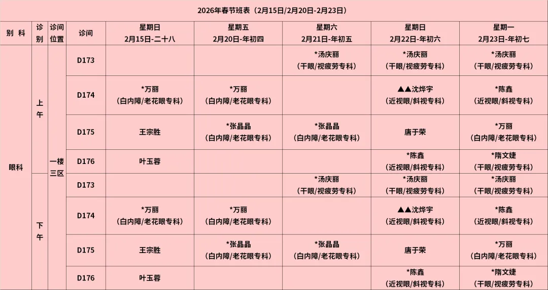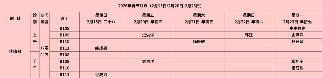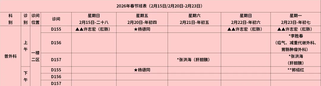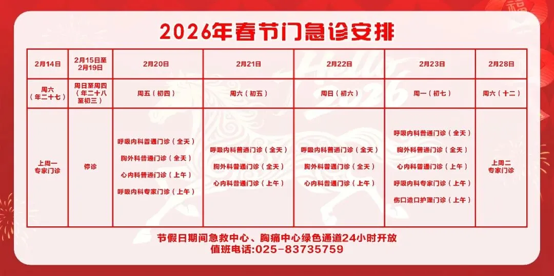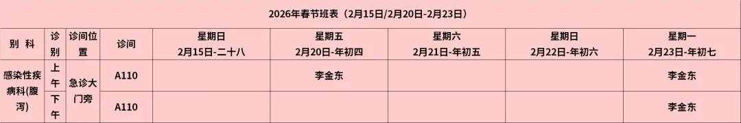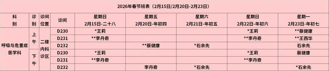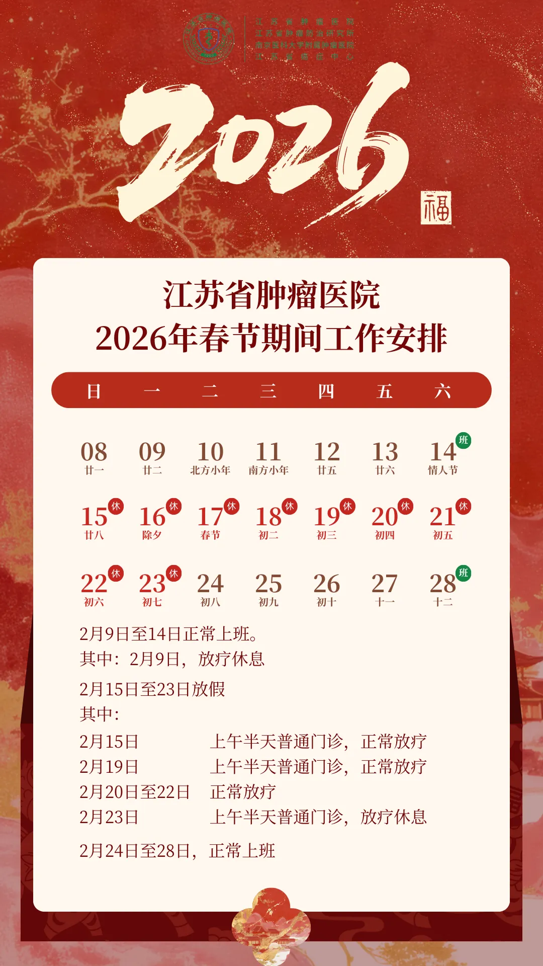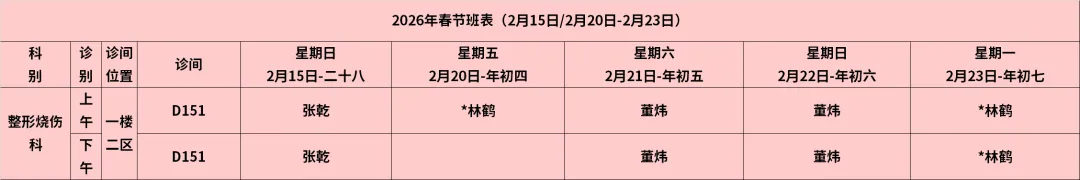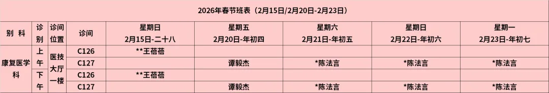 放射科:2月15日—2月23日DR拍片、骨密度检查正常值班,CT急诊备班。钼靶2月23日全天,MRI2月23日加班。