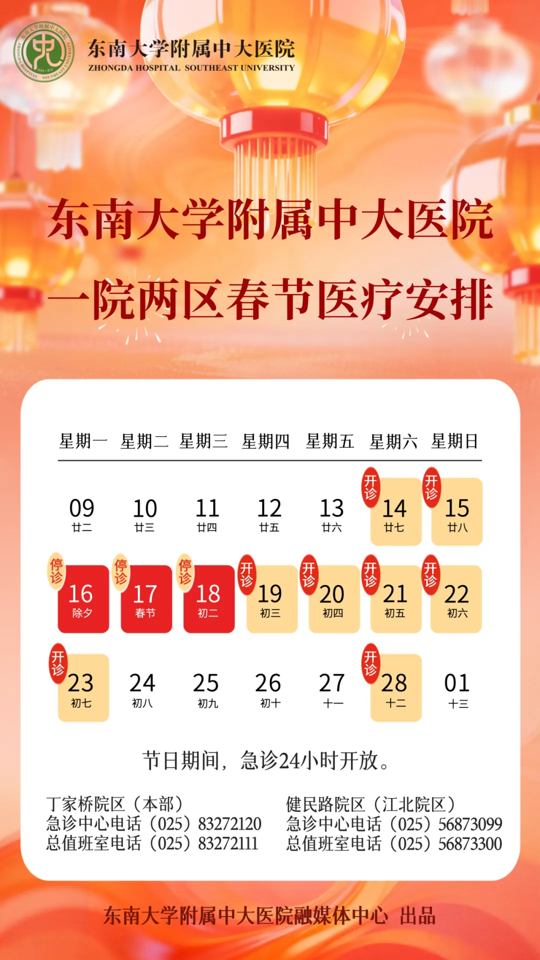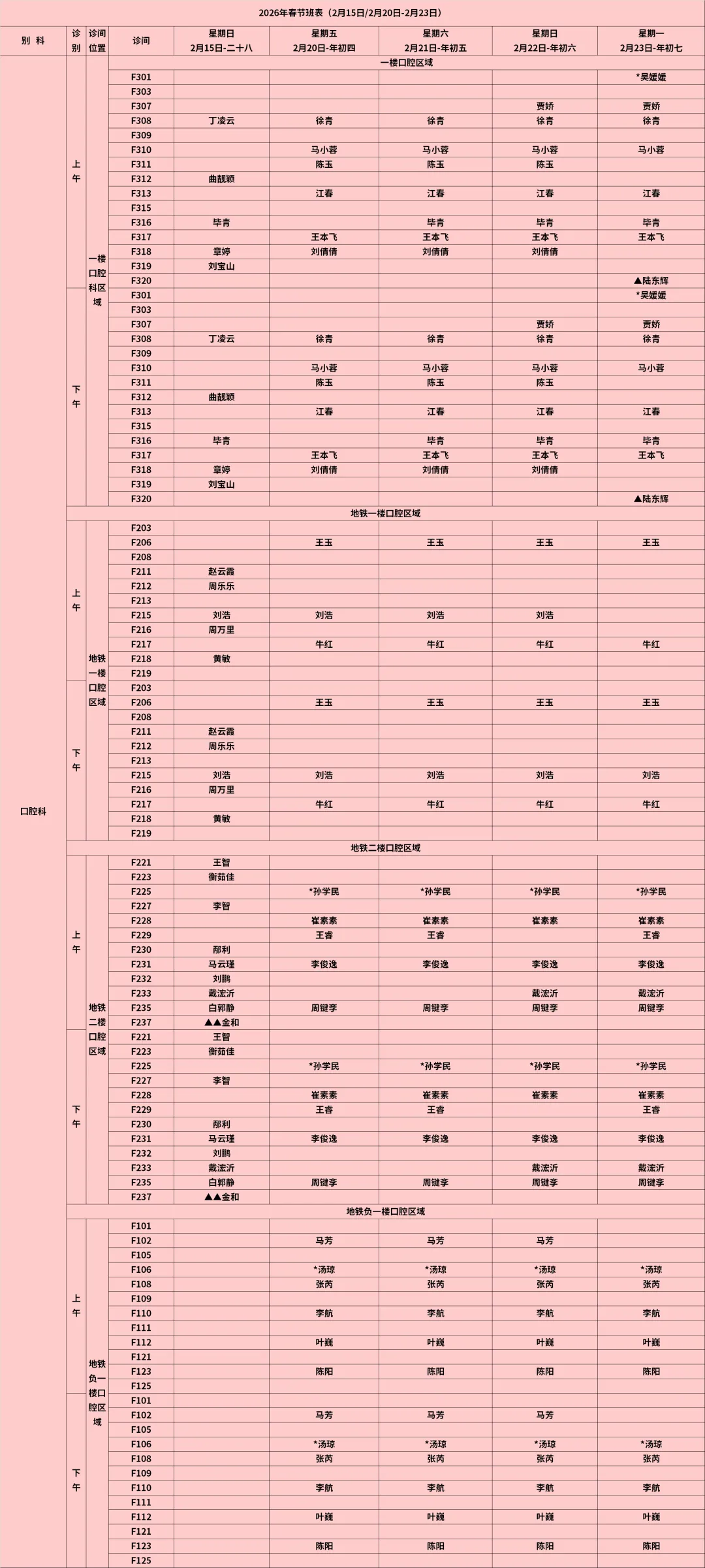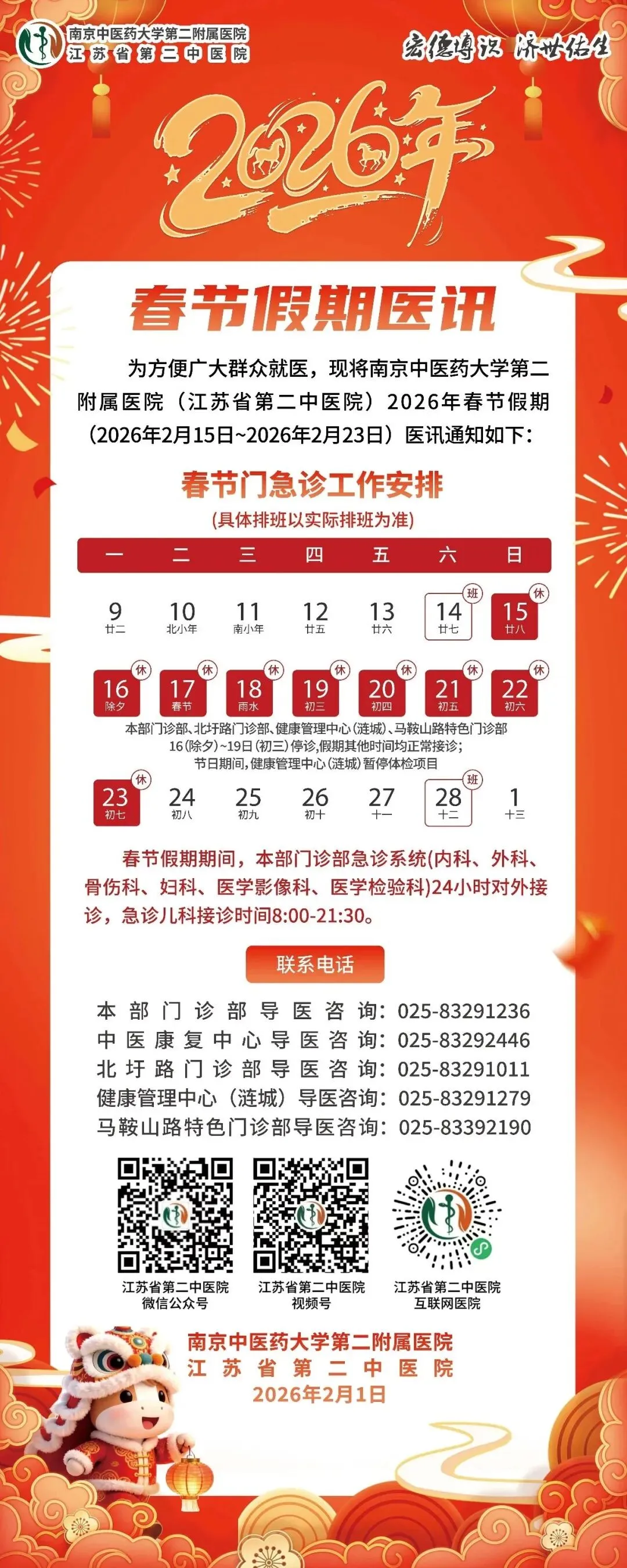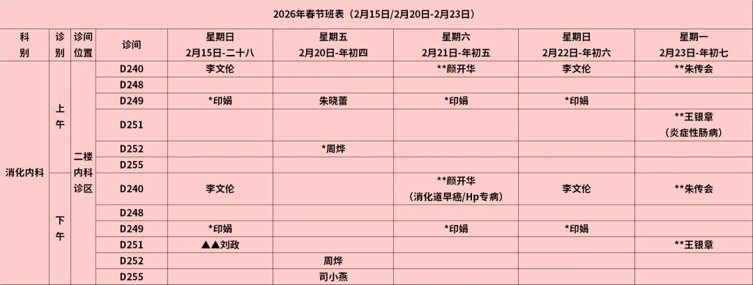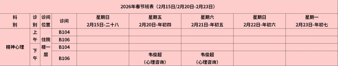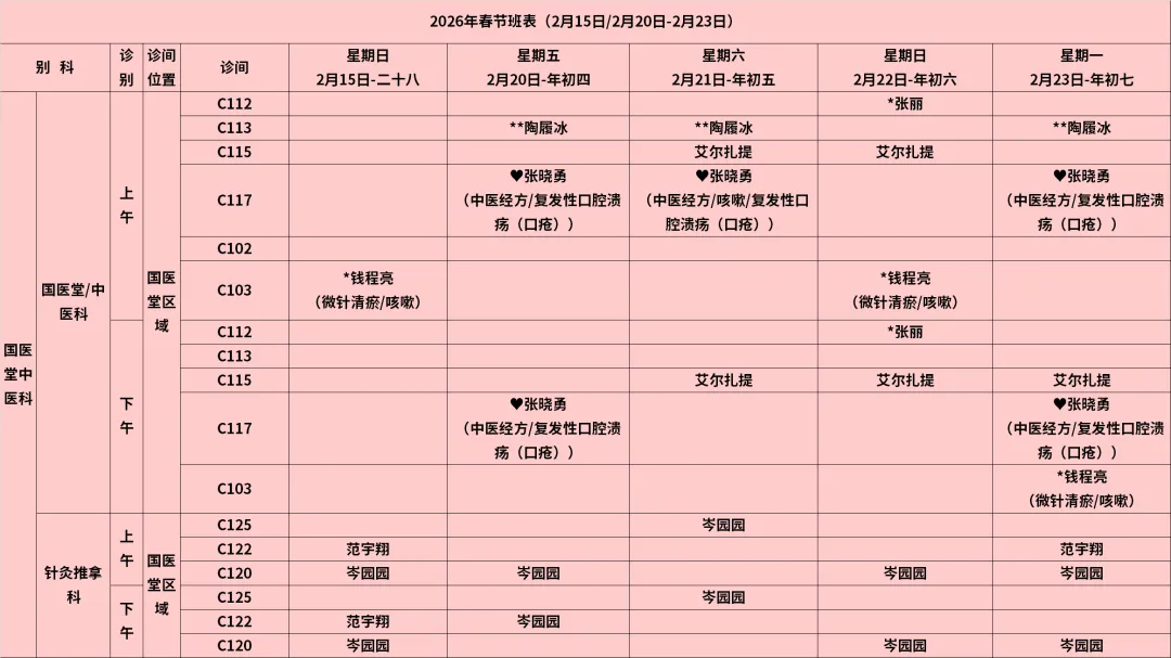 放射科:2月15日—2月23日DR拍片、骨密度检查正常值班,CT急诊备班。钼靶2月23日全天,MRI2月23日加班。