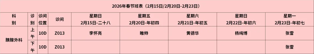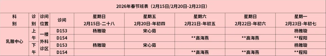 乳腺病科:2月15日、20日、21日、22日、23日有乳腺B超。