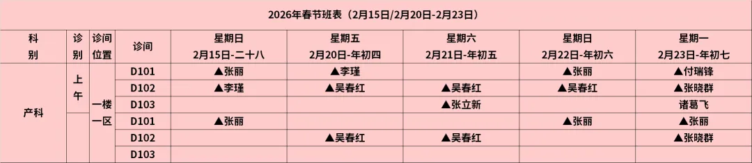 产科建卡:2月17日、18日、20日、21日、23日全天产科建卡。