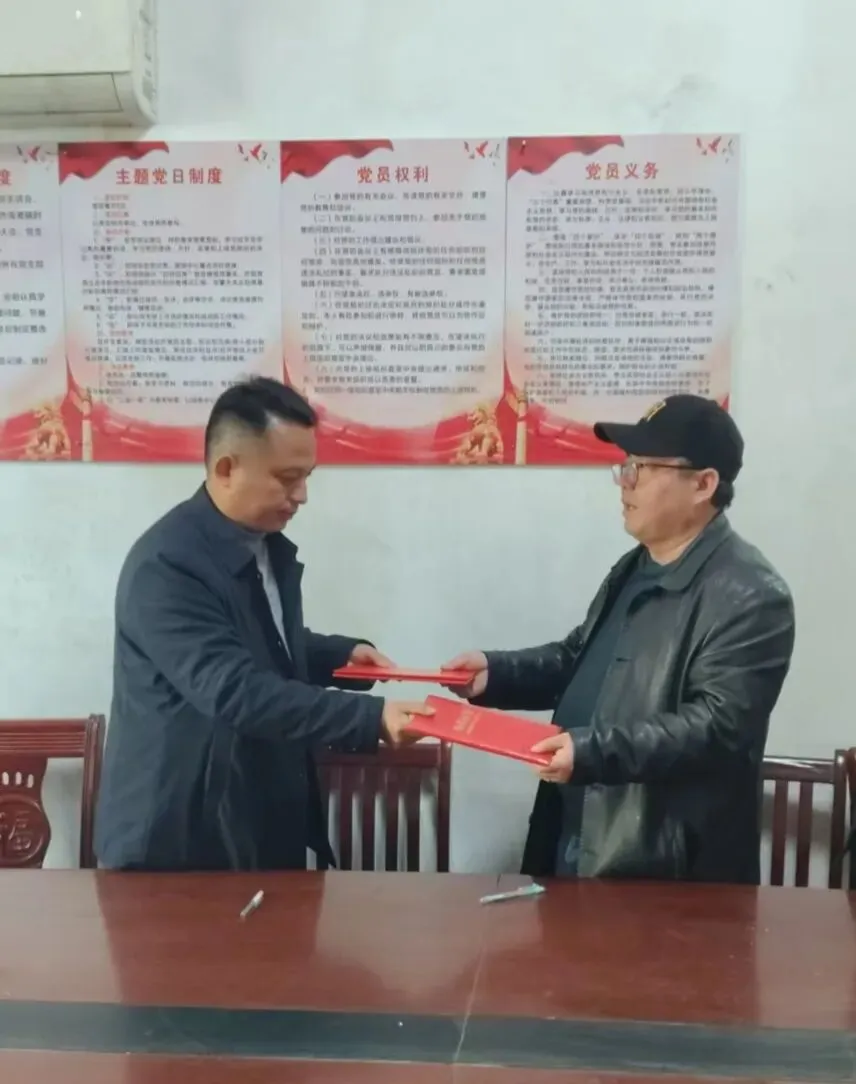 上午十一时许,在走访慰问和合乡南溪村结束后,商会慰问团与部分村干部在和合乡南溪村委会会议室举行了简短的座谈会暨“支部共建 双南同心”签约仪式。