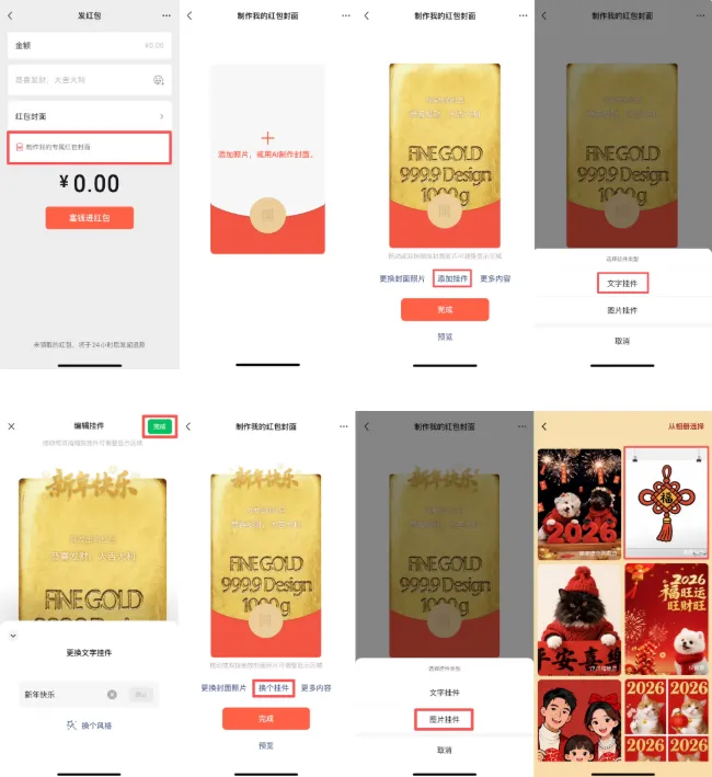 微信红包封面玩法升级:支持自定义挂件,公众号留言限时享“金色昵称”