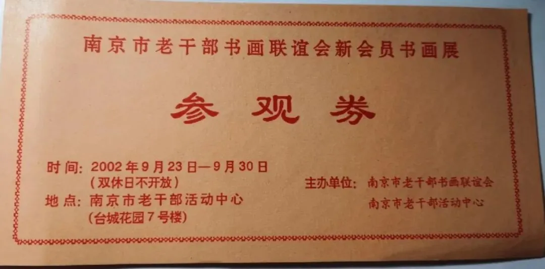 4.2002年,南京市老干部书画联谊会新会员书画展参观券。