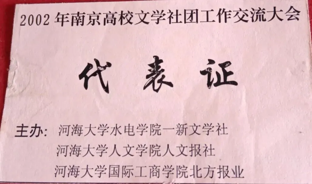 14.2002年,南京高校文学社团工作交流大会代表证。
