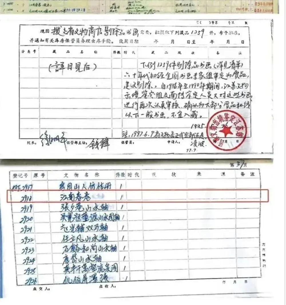 (1997年“剔除文物”表格中《江南春》赫然在列)