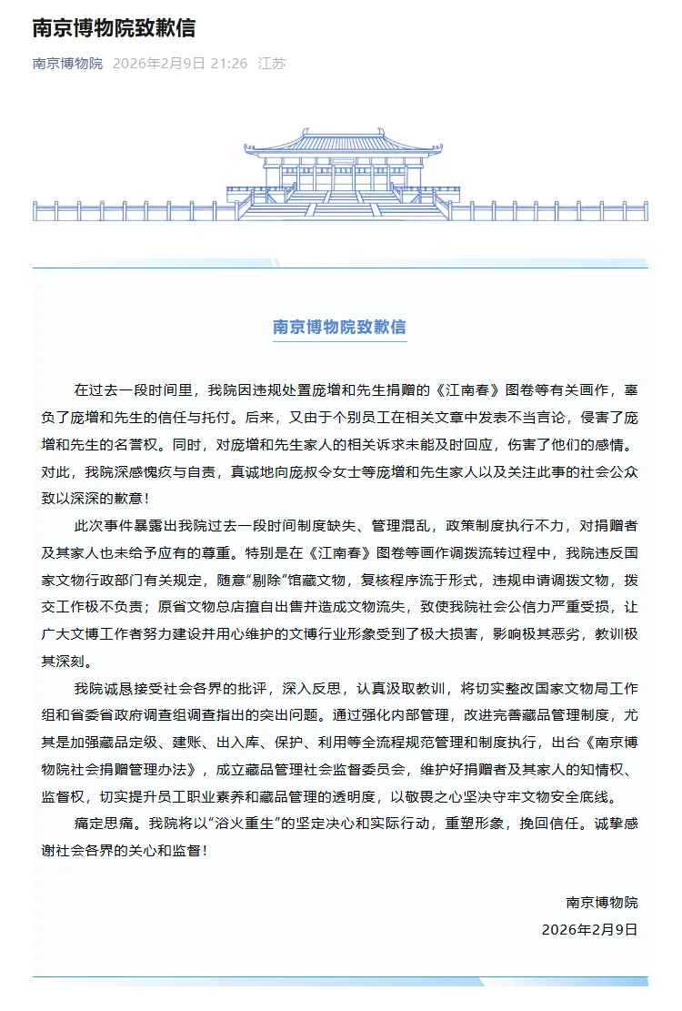 时隔2个月,南京博物院文物被盗卖事件,终于在2月9日晚迎来了官方通报。