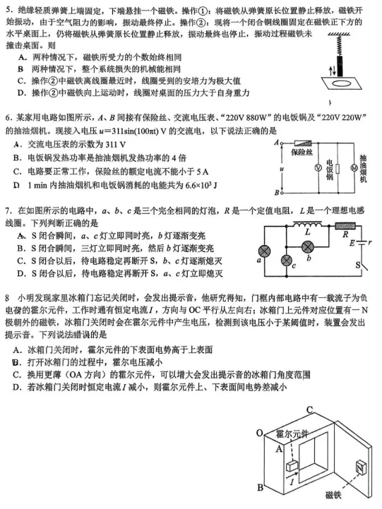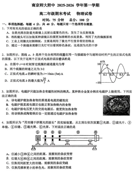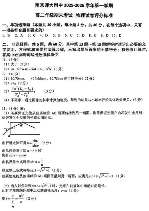 高二物理:北师大附中2027届高二上学期期末考试物理试卷+答案