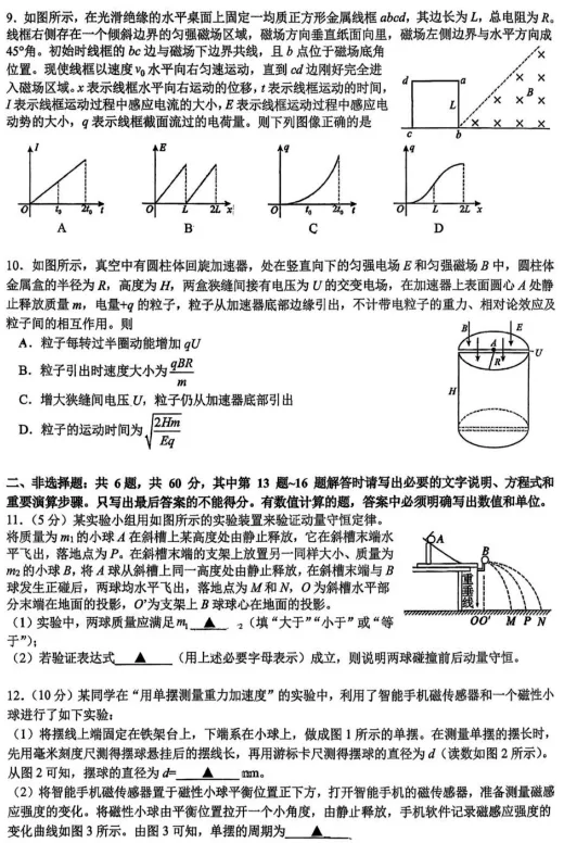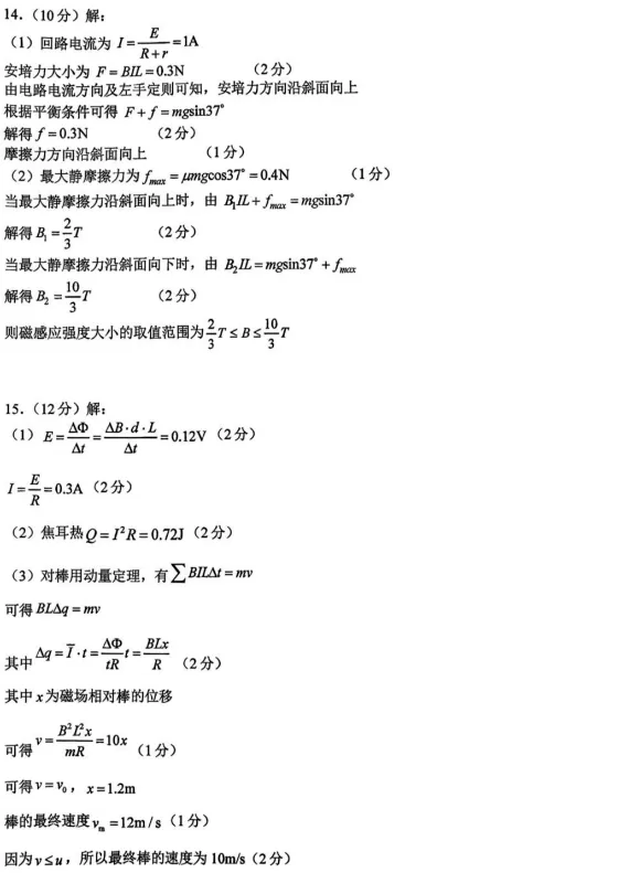 高三物理:全国九省联考2026届高三上学期1月联考物理试题+答案