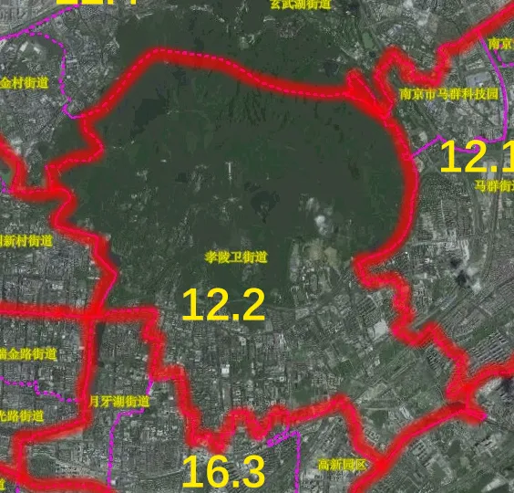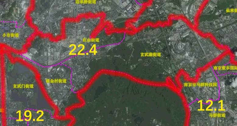 5、玄武区北部区域:包括3个街道范围,七普22.4万人。