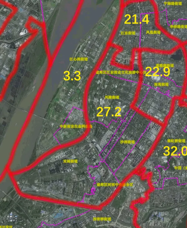 10、大河西地区:本文将建邺区的兴隆等街道算作大河西,七普27.2万人。该区域是较高质量规划建设的新城区。