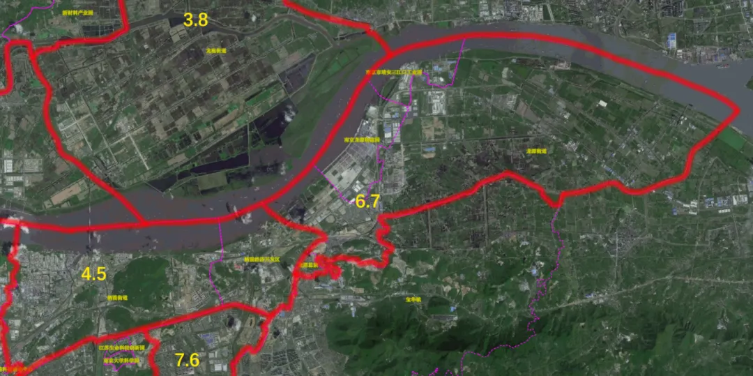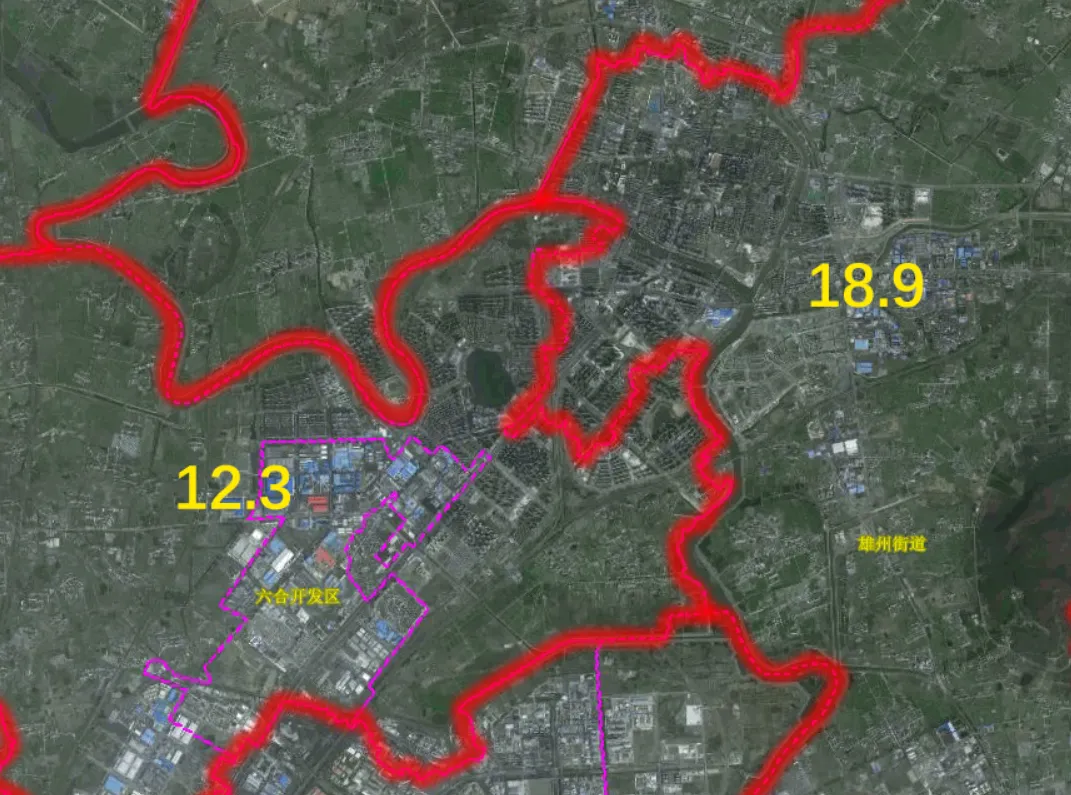 25、江北地区的普通街道(可以理解为乡镇)有不少产业建设,但城镇规模普遍不太大,新式小区建设得比较松散。基于本文篇幅,并不一一罗列。这些“街道”的面积普遍被合并得很大,其中最大的马鞍街道只比扬中市小一点点。而这些街道境内拥有大量村镇,主镇区则普遍有一定规模。其中比较特殊的,如六合区冶山街道的省界外,安徽省也有一个冶山镇。而浦口区桥林街道的省界处,有个乌江镇,而安徽一侧也有一个同名镇。