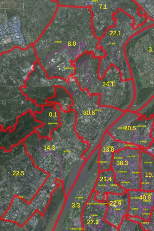 20、栖霞和龙潭:栖霞和龙潭离主城区较远,而因为产业性质,其居住人口规模不高,两者合计11.2万人,龙潭中东部有大片农业区,估算其城市人口10万人。另外句容市宝华镇和其是一体的。