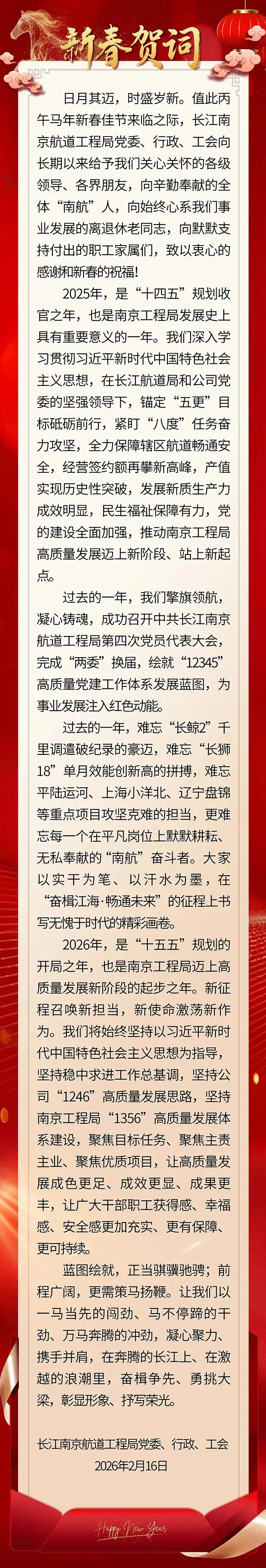 >长江南京航道工程局二〇二六年新春贺词