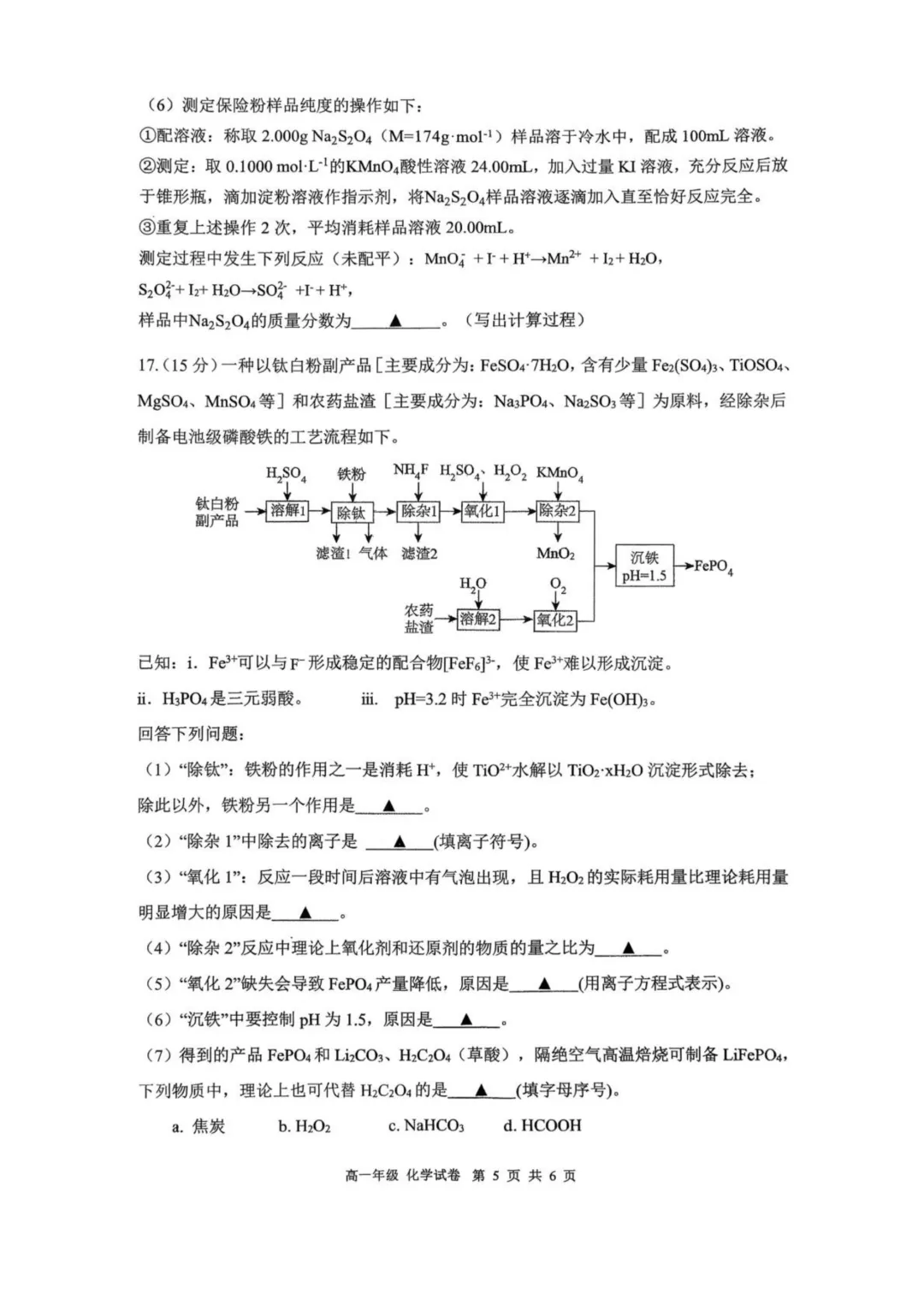 六、高中化学二轮复习小题精练/大题精练