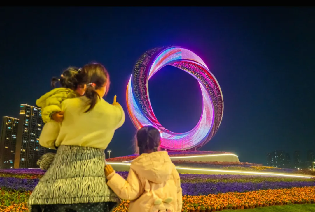 “哇!好漂亮的‘甜甜圈’!”近日,在南京江北新区浦镇大街与浦滨路交叉口,一座环形艺术地标调试亮灯。夜幕之下,光影流转、色彩变幻,瞬间成为街头最吸睛的风景,引得来往市民纷纷驻足拍照。详情
